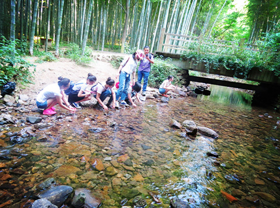 漫步在蔥蔥郁郁的竹林里,感受著大自然給我們的饋贈,在經(jīng)過一條小溪流的時候大家紛紛停下腳步在溪邊嬉戲,好像都回到了童年。